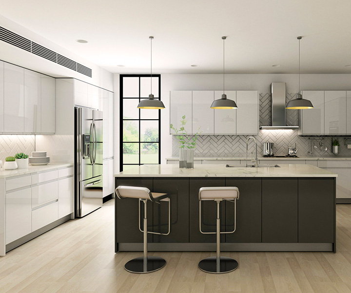 • Lacquer Door - 7/8" think MDF board with lacquer finish and J-shape milled handle
